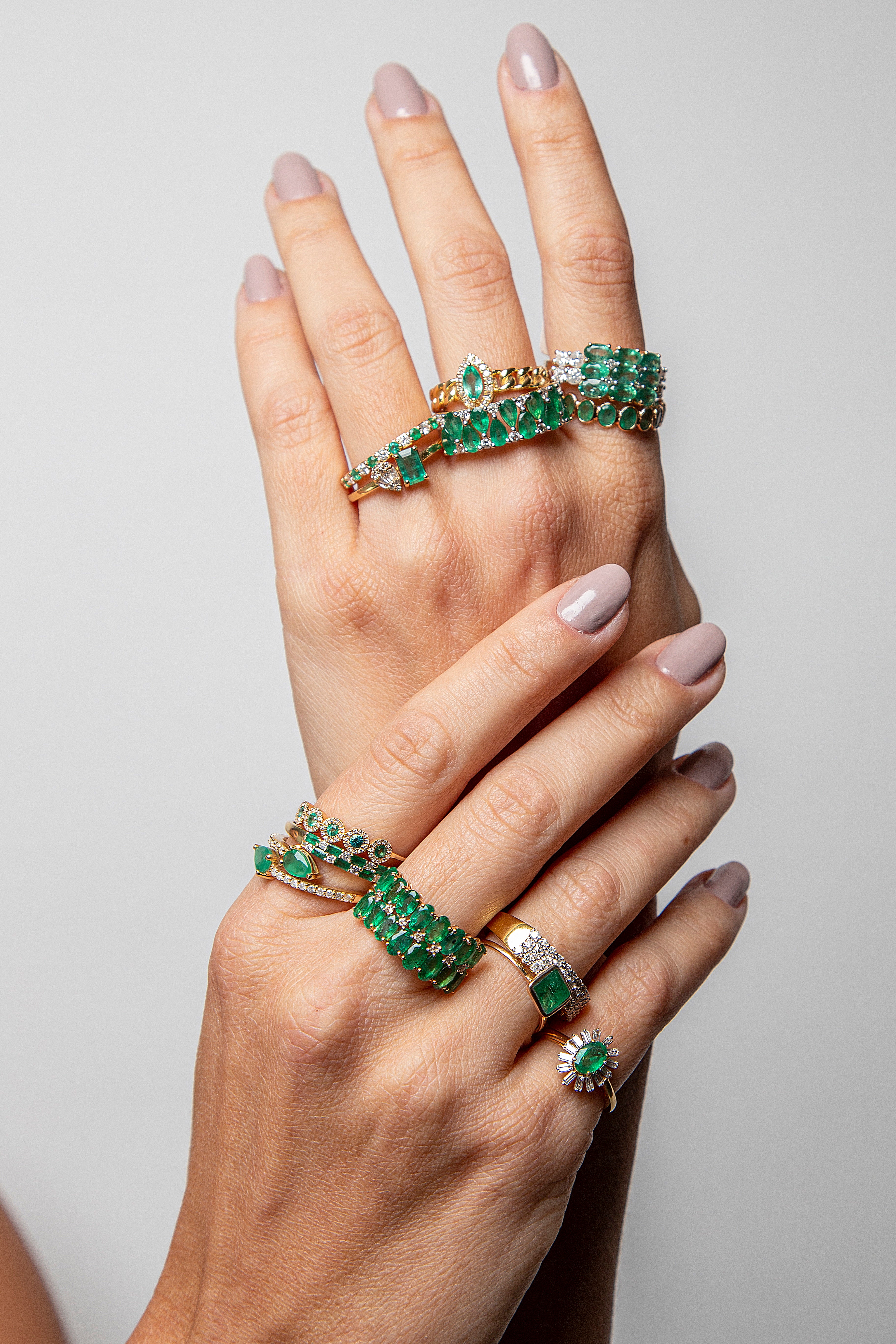 Aretes Hoop De Esmeralda Y Diamante En Oro Amarillo De 14K .53Ct