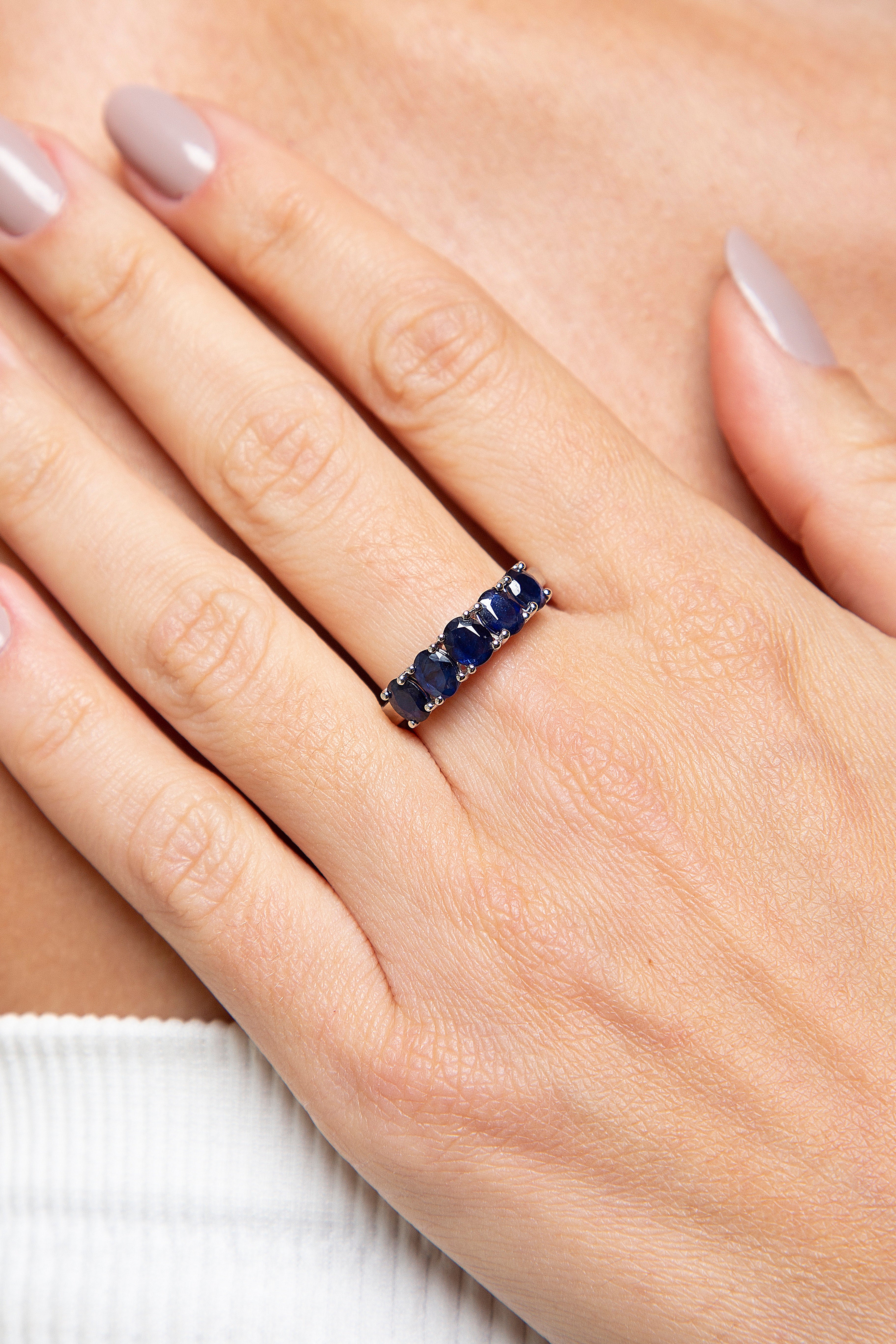 Anillo De Zafiro Azul Y Diamante Y Piedra Preciosa En Oro Blanco De 14K .52Ct